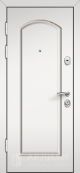 Белая дверь входная металлическая с зеркалом внутри и усиленными петлями №76