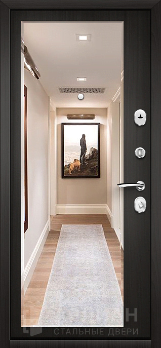 Левая входная стальная дверь с зеркалом увеличенной толщины №9