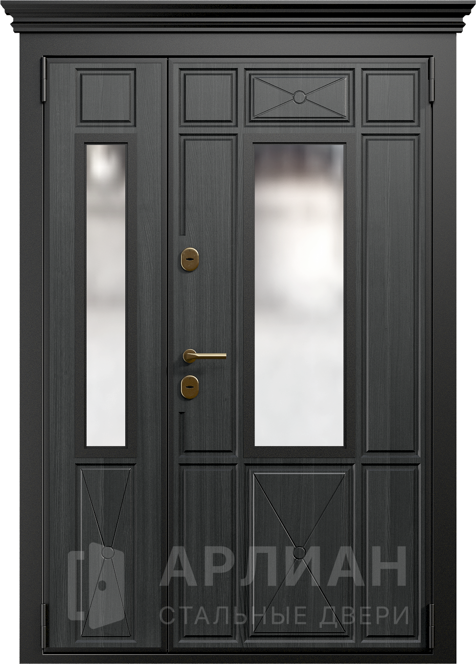 Металлическая входная дверь в коттедж с верхней фрамугой №10
