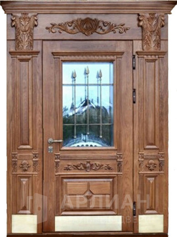 Входная парадная дверь с ковкой отделка натуральным деревом №79